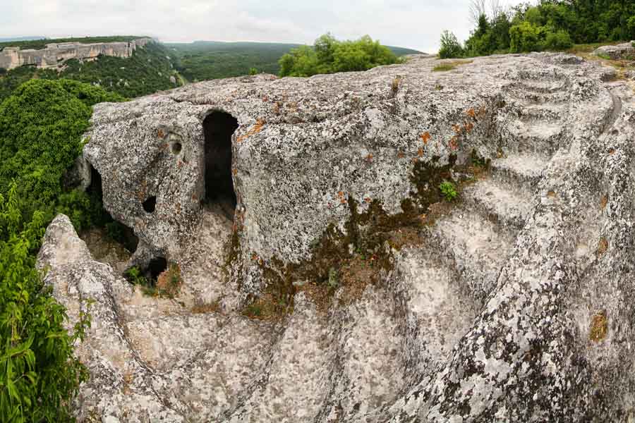 Словно неприступное гнездо гордого орла, укрылся на одинокой вершине от посторонних глаз самый миниатюрный и самый неисследованный «пещерный» город Тавриды – Тепе-Кермен. Всего-то один гектар платообразной нашлепки, венчающей гору, и до 250 вырубленных в скале помещений. А на самом верху под землей среди колючих зарослей прячутся остатки домов и улиц – немых свидетелей радостей и печалей, побед и поражений многих поколений его жителей. О Тепе-Кермене мы знаем мало. Молчат летописи, молчат древние скалы, лишь в старинных легендах мелькают скудные упоминания. Даже собственное имя города затерялось в столетиях. Нынешнее – «крепость на вершине» – ему дали пришедшие на эти благодатные земли крымские татары.